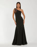 Turn heads in this black one-shoulder mermaid gown with a multicolored beaded shoulder embellishment and sleek asymmetrical neckline. The figure-hugging silhouette flares into a floor-length hem, perfect for weddings, galas, and evening events.