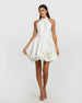 This bold mini dress featuring a flattering halter neckline, an open back, and a playful bubble hem for added flair. Perfect for a night out, cocktail parties, or any special occasion, this dress combines style and fun in a standout design that’s sure to turn heads.