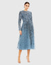 Blue Embellished Illusion High Neck Long Sleeve Dress