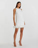 White Feathered Hem High Neck Sleeveless Trapeze Dress